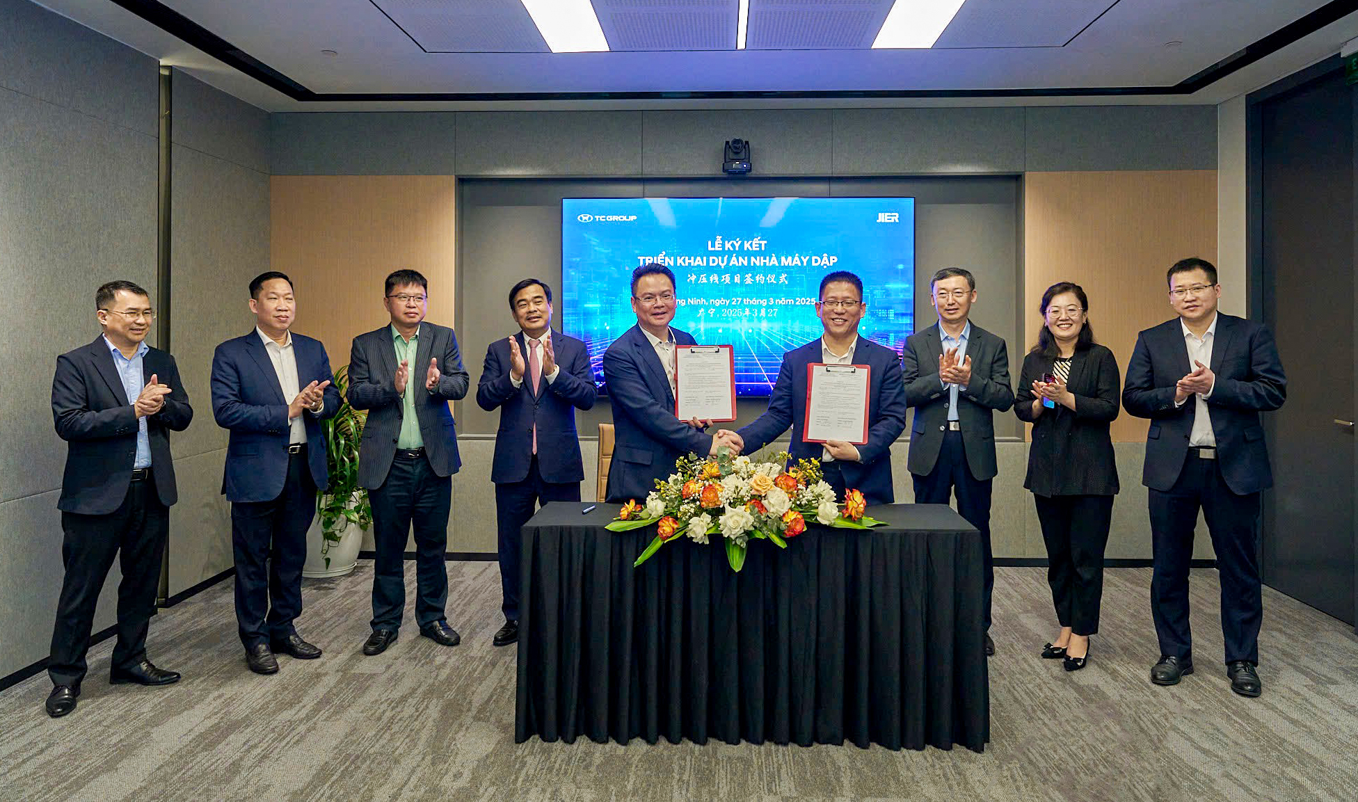 在越南,任立伟董事长与成功集团董事长阮英俊进行会谈交流,双方签署冲压车间整体解决方案合作协议。同时,与越南本土知名新能源汽车主机厂达成冲压线项目合作,实现越南市场新突破。