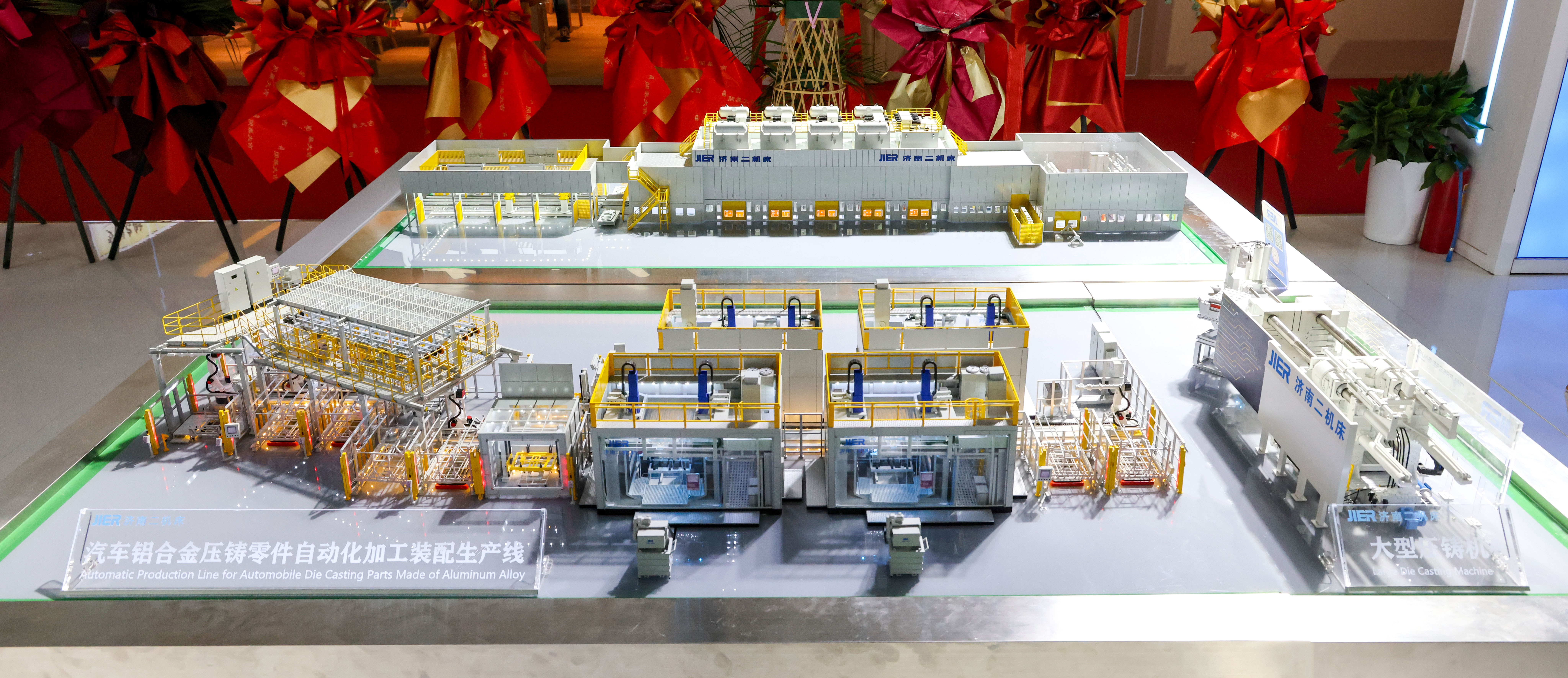 同时展出汽车铝合金压铸零件自动化加工装配生产线、大型高速智能全伺服冲压生产线等产品模型,以及数字孪生健康管理系统,全方位展示企业智能制造解决方案。